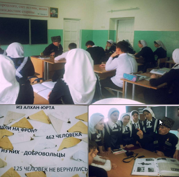 Встреча с директором Алхан-Юртовского музея боевой и трудовой славы Салтымурадовым А. И.Собрали интересный материал об односельчанах, воевавших и в Великую Отечественную войну, и гражданскую войну.