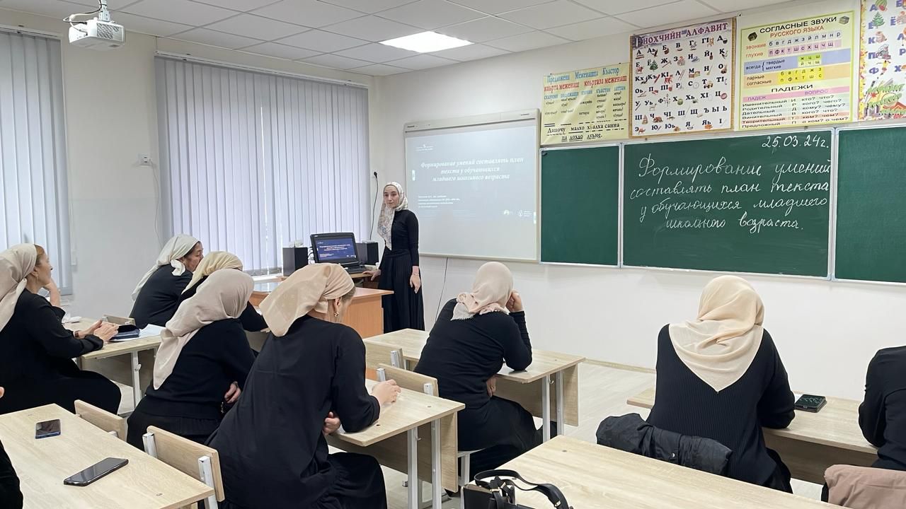 25.03.2024Учительница начальных классов МБОУ "СОШ № 1 с. Алхан-Юрт" Хасуева Петимат Айндыевна, участвовавшая в республиканском интенсиве "Формирование умений составлять план текста обучающимися младшего школьного возраста", поделилась полученными знаниями с коллегами, проведя 25 марта в свой школе семинар с испрльзованием материалов республиканского интенсива